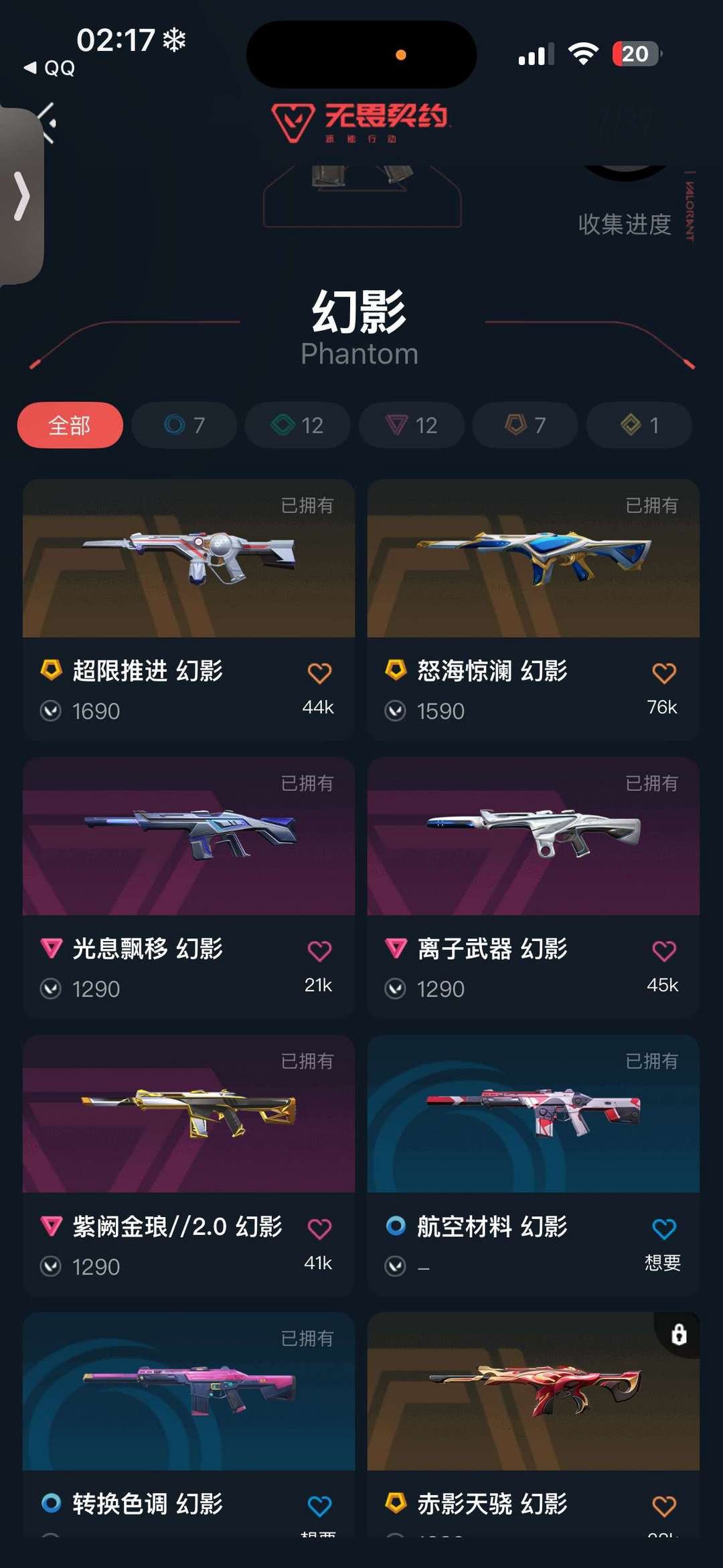 q区狂徒幻影各七款皮肤还有一个金色刀皮 禁止炸鱼炸鱼禁止打排位!!!