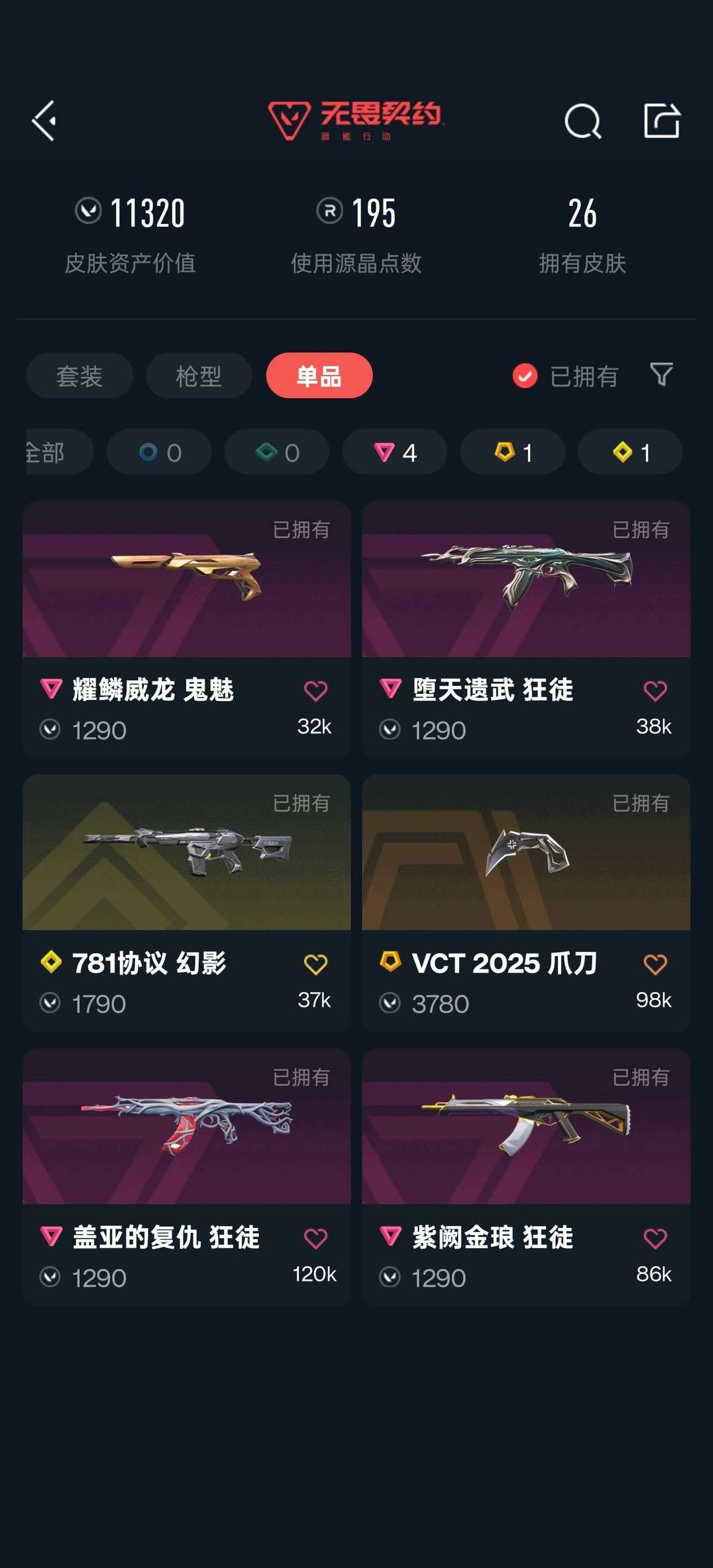 观察期不可排位❤️狂徒紫阙金琅❤️VCT25爪刀❤️幻影781协议/狂徒堕天/狂徒盖亚/鬼魅威龙
