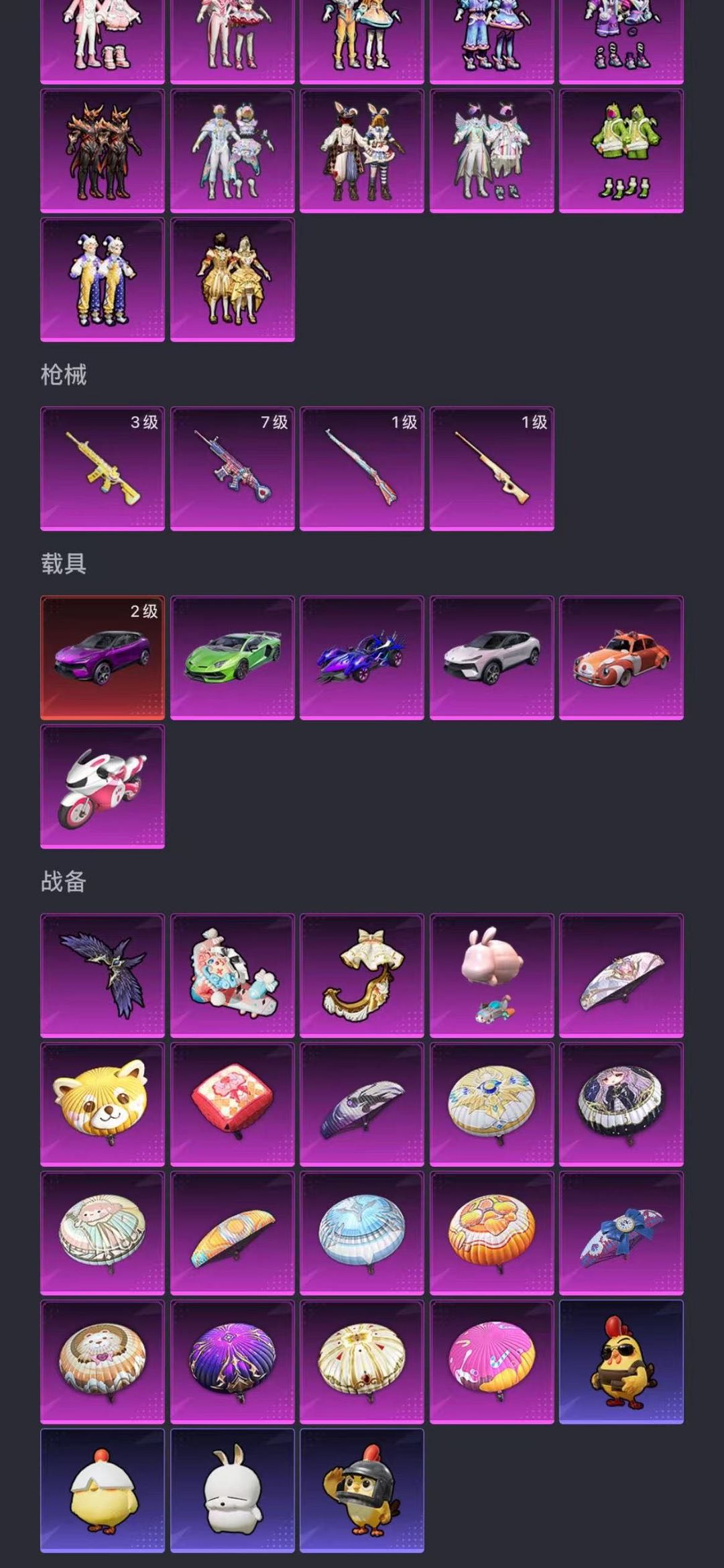 螳螂 雪国 22 粉 4 枪 6 载具 1 飞机 兰博基尼 路特斯 具体看图