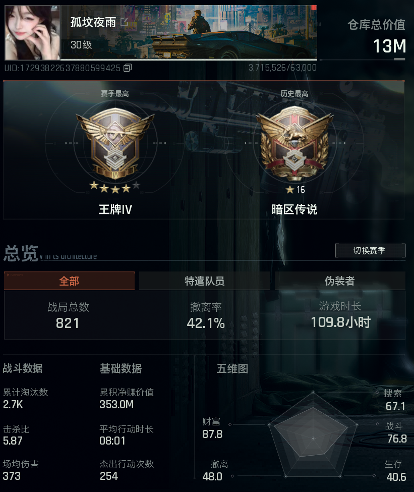 【科恩币:1043W】战斗分76.8⭐13M⭐租前看描述⭐机场猛攻⭐30级地图全开⭐