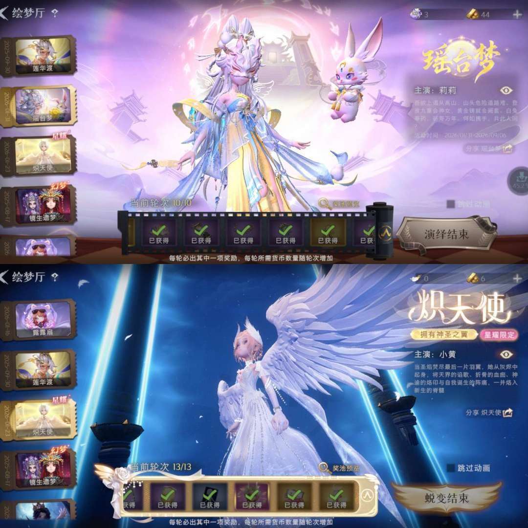瑶台梦满抽【全图鉴有兔宝】✨全皮肤全道具全舞蹈有内测套✨炽天使星耀幻梦全金全紫全魔盒128档商城全清
