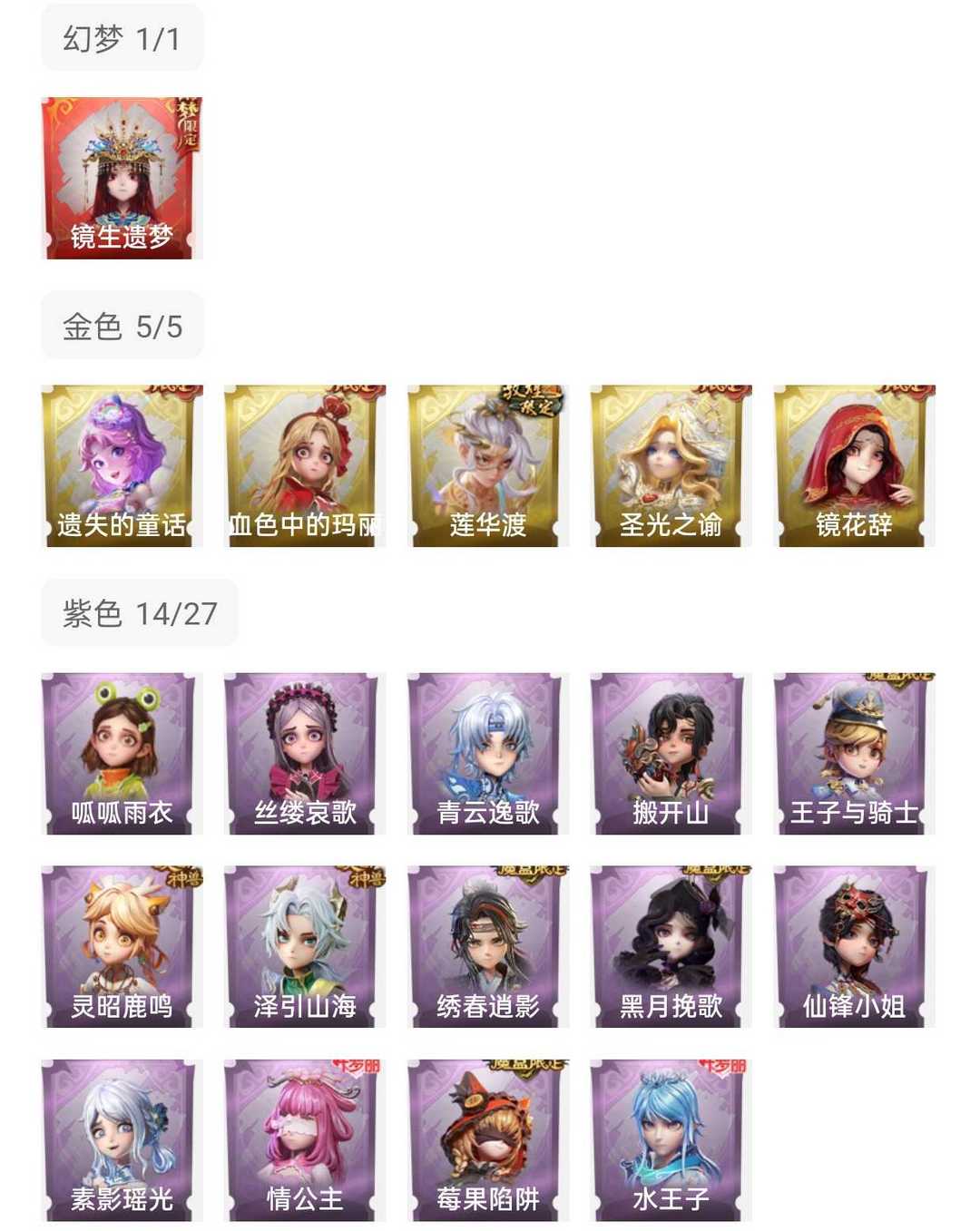 装备描述: 兔宝到2月9号♥晶澜灵翼♥百万铲铲币号♥免二级密码♥1红6金♥镜生遗梦,零-渡鸦公爵莲华渡圣光之谕 【幻梦皮肤】巫铃儿-镜生遗梦 【金色皮肤】零-渡鸦公爵、逍遥-莲华渡、薇薇安-圣光之谕、爱丽丝-血色中的玛丽、小黄-遗失的童话、巫铃儿-镜花辞 【紫色皮肤】艾伦-黎明猎手、零-搬开山、薇薇安-仙锋小姐、莉莉-莓果陷阱、薇薇安-黑月挽歌、阿念-王子与骑士、莉莉-情公主、艾伦-水王子、逍遥-泽引山海、阿念-灵昭鹿鸣、零-青云逸歌、巫铃儿-素影瑶光、爱丽丝-丝缕哀歌、逍遥-绣春逍影、小黄-呱呱雨衣 【道具皮肤】喷气背包-晶澜灵翼、夜视仪-金丝眼镜、桃木剑-凤鸣九天、传送按钮-幻宠之门、桃木剑-最后的独角兽、专业手电-星寂、铲子-赞萌波板糖、专业手电-云端梦想计划、额外的背包-飞花令、电击枪-甜蜜泡泡枪、音响-鸣沙鼓、刺刀-小鲨匕首、桃木剑-永眠曲、铲子-龙鳞、短管猎枪-星光的裁决、音响-happy猫、黄牛能量饮料-青玉抱丹、葫芦-伏妖塔、摸金符-花落精绝、腰包-月下莲台、长鞭-小狗蛇点点鞭、急救包-蔷薇物语、传送按钮-昆仑镜、铲子-卡皮巴拉小黄豚铲、摸金符-祝祷词、铲子-圣心之泪、腰包-宝