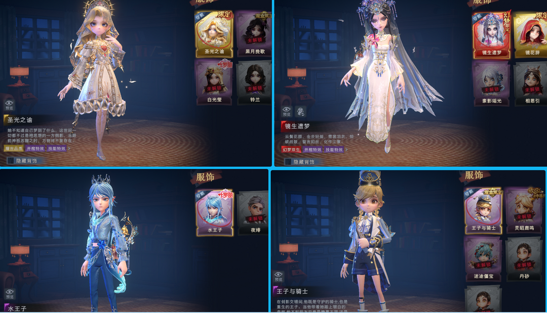 限制: 撤单率<50%才可租用此帐号装备描述:幻梦皮肤:1个;金色皮肤2个;紫色皮肤:4个;道具皮肤15个;皮肤:巫铃儿-镜生遗梦,薇薇安-圣光之谕,巫铃儿-镜花辞,小黄-呱呱雨衣,爱丽丝-丝缕哀歌,阿念-王子与骑士,艾伦-水王子;道具:铲子-龙鳞,桃木剑-凤鸣九天,传送按钮-昆仑镜,摸金符-祝祷词,腰包-宝剑八,短管猎枪-星光的裁决,葫芦-伏妖塔,黄牛能量饮料-青玉抱丹,额外的背包-飞花令,夜视仪-金丝眼镜,音响-鸣沙鼓,音响-happy猫,荧光棒-桃心-荧光棒-桃心,转轮手枪-新星时代,急救包-蔷薇物语;饰品:头饰-大葱明头套,头饰-火爆了头套,头饰-炙热烧烤,头饰-鱼头怪头套,头饰-烈焰红唇头套,头饰-面具马头套,头饰-哈士奇头套,头饰-嘻嘻头套,头饰-滑稽头套,头饰-萨卡班甲鱼头套,头饰-呆滞头套,头饰-卑微头套,头饰-像素朋克墨镜,背饰-蝶恋花,背饰-天使的呼唤,挂饰-钗头凤,挂饰-天使消失的年代;动作:动作-鹏友摇,动作-舞台中心,动作-心跳摇,动作-举牌,动作-律动迪斯科,动作-抬手;工牌:工牌-卷珠帘,工牌-圣光之誓,工牌-冰晶宫,工牌-童话扉页;员工:小黄,爱丽丝,零,阿念,逍遥,薇薇安,巫铃儿,莉莉,艾伦,爱德