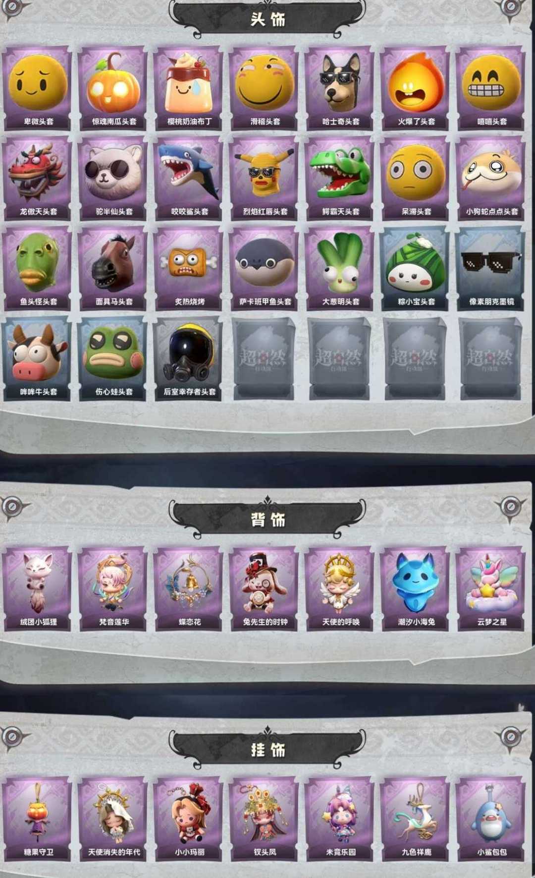 渡鸦公爵✨小满礼包✨傩戏联动✨莲花渡抽满✨晶澜灵翼✨原始股东✨龙头✨1幻梦6耀世27紫34道具✨全皮
