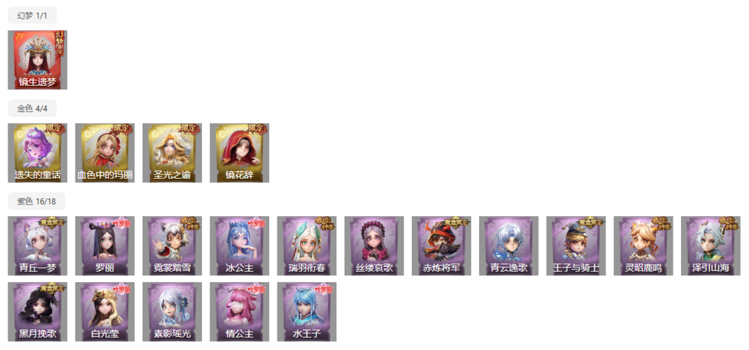 限制: 租号20次及以上 |装备描述:【幻梦皮肤】镜生遗梦 【金色皮肤】莲华渡、镜花辞、圣光之谕、血色中的玛丽、遗失的童话 【紫色皮肤】异色序曲、王子与骑士、灵昭鹿鸣、白光莹、黑月挽歌、赤炼将军、泽引山海、冰公主、丝缕哀歌、瑞羽衔春、罗丽、霓裳踏雪、青丘一梦、情公主、水王子 【道具皮肤】赞蓢露比水枪、小鲨匕首、赤色之刃、青瓷、圣心之泪、龙鳞、焰骨、凤鸣九天、永眠曲、最后的独角兽、小狗蛇点点鞭、昆仑镜、幻宠之门、祝祷词、花落精绝、宝剑八、绯红柴郡猫、星光的裁决、云端梦想计划、伏妖塔、青玉抱丹、飞花令、金丝眼镜、happy猫、桃心、乘风溯雪,紫霄、甜蜜泡泡枪、飞天绫、卡皮巴拉小黄豚铲、晶澜灵翼、薔薇物语 【动作】鸳鸯戏、刀马舞、呲牙舞、九万字舞、来财舞、姬芽摇、鹏友摇、DL摇、心跳摇、伤心摇、舞台中心、小雨摇、星奇摇、敲门舞、青海摇、律动迪斯科、旋转舞、山楂树之舞、人皇步、痞帅进行曲、晚安公主舞、抬手、失落,七仔摇、阿帕次舞