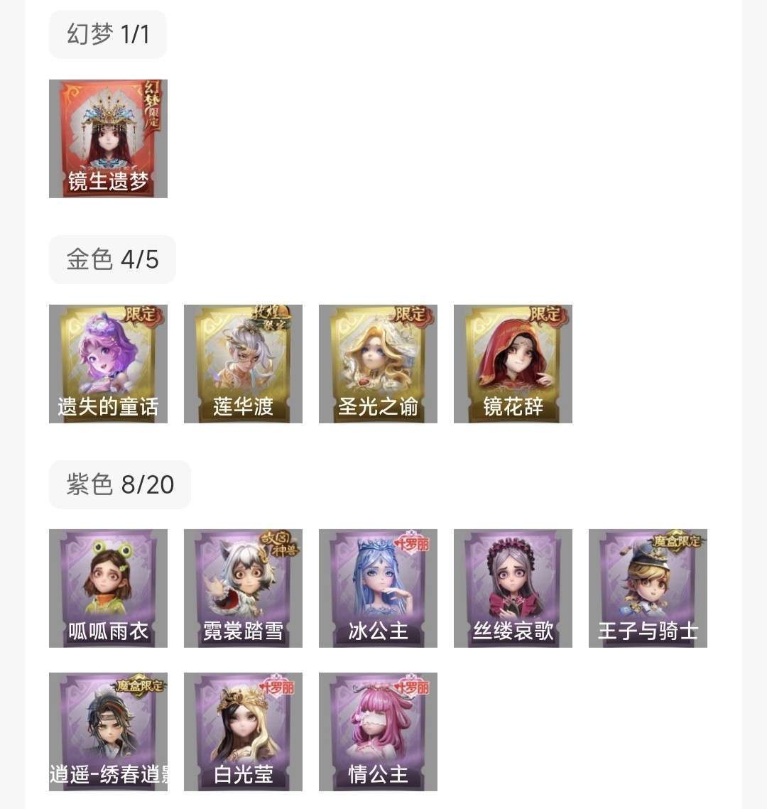 1红4金10紫 幻梦镜生遗梦 耀世圣光之谕 遗失的童话 莲华渡 镜花辞 叶罗丽 卡皮巴拉 鲨匕 蛇鞭
