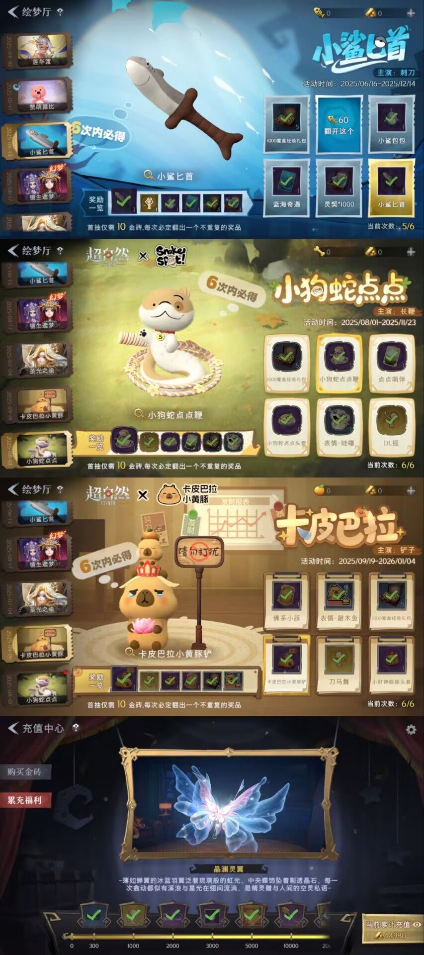 氪条4.5k⭐晶澜灵翼⭐满抽镜生遗梦4耀世15紫⭐莲花渡⭐小狗蛇小鲨匕卡皮巴拉⭐圣光之谕⭐遗失童话