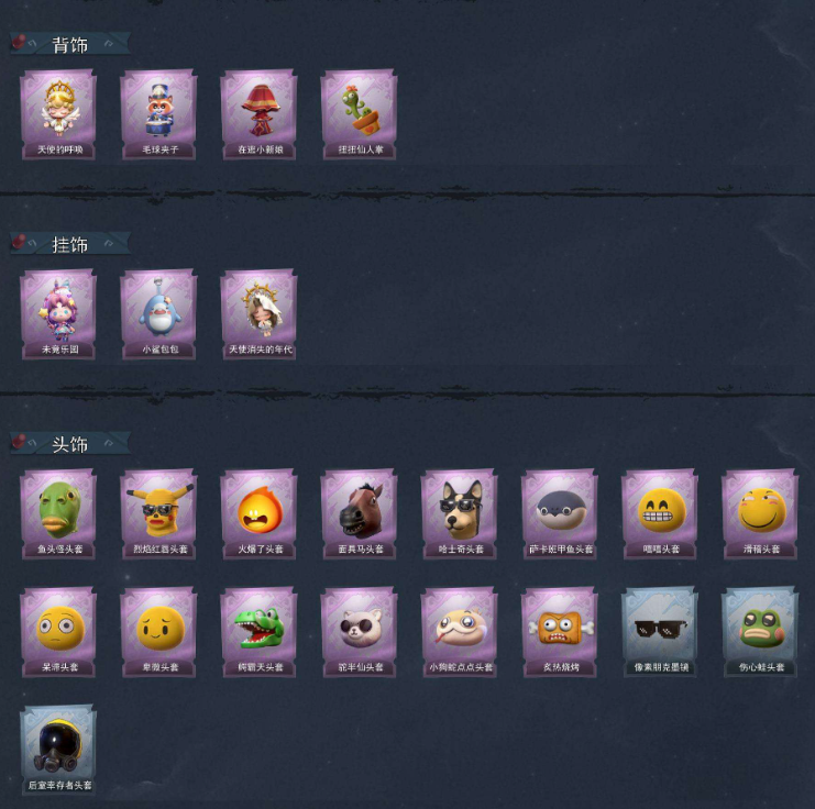 装备描述:一单一结 不顶号 全交给平台改密码别来搞心态!!! 抓住平台拉黑账号【段位】王牌 【幻梦皮肤数量】0 【金色皮肤数量】1 【紫色皮肤数量】6 【道具皮肤数量】11 【累充】67760 【赛季魔盒】普通魔盒 【员工】小黄、爱丽丝、零、阿念、逍遥、薇薇安、巫铃儿、莉莉、艾伦、爱德华、兰 【金色皮肤】薇薇安-圣光之谕 【紫色皮肤】薇薇安-黑月挽歌、小黄-青丘一梦、阿念-王子与骑士、莉莉-情公主、爱丽丝-丝缕哀歌、小黄-呱呱雨衣 【道具皮肤】摸金符-祝祷词、桃木剑-永眠曲、刺刀-小鲨匕首、急救包-蔷薇物语、摸金符-花落精绝、长鞭-小狗蛇点点鞭、短管猎枪-星光的裁决、转轮手枪-新星时代、腰包-宝剑八、刺刀-青瓷、铲子-圣心之泪 【头饰】鱼头怪头套、烈焰红唇头套、火爆了头套、面具马头套、哈士奇头套、萨卡班甲鱼头套、嘻嘻头套、滑稽头套、呆滞头套、卑微头套、鳄霸天头套、驼半仙头套、小狗蛇点点头套、炙热烧烤、像素朋克墨镜、伤心蛙头套、后室幸存者头套 【背饰】天使的呼唤、毛球夹子、在逃小新娘、扭扭仙人掌 【挂饰】未竟乐园、小鲨包包、天使消失的年代 【动作】luvaboy、DL摇、心跳摇、伤心摇、小雨摇、舞