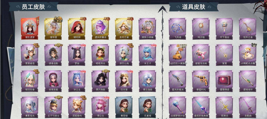1红皮 4金皮 3魔盒 17紫皮 巫铃儿-镜生遗梦,巫铃儿-镜花辞,薇薇安-圣光之谕,逍遥-莲华渡,