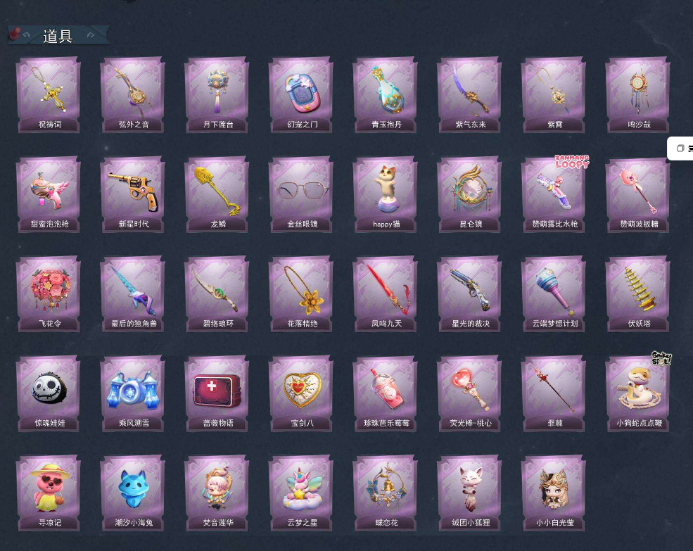装备描述:【段位】超自然传说 【幻梦皮肤数量】1 【金色皮肤数量】4 【紫色皮肤数量】12 【道具皮肤数量】35 【累充】31650金砖 【赛季魔盒】稀世豪华魔盒 【员工】小黄、爱丽丝、零、阿念、逍遥、薇薇安、巫铃儿、莉莉、艾伦、爱德华、兰 【幻梦皮肤】巫铃儿-镜生遗梦 【金色皮肤】逍遥-莲华渡、薇薇安-圣光之谕、小黄-遗失的童话、巫铃儿-镜花辞 【紫色皮肤】零-搬开山、薇薇安-仙锋小姐、爱丽丝-甜梦派对、莉莉-莓果陷阱、小黄-异色序曲、莉莉-除妖小师妹、阿念-王子与骑士、薇薇安-白光莹、零-青云逸歌、爱丽丝-丝缕哀歌、逍遥-绣春逍影、小黄-呱呱雨衣 【道具皮肤】摸金符-祝祷词、除颤仪-弦外之音、腰包-月下莲台、传送按钮-幻宠之门、黄牛能量饮料-青玉抱丹、刺刀-紫气东来、摸金符-紫霄、音响-鸣沙鼓、电击枪-甜蜜泡泡枪、转轮手枪-新星时代、铲子-龙鳞、夜视仪-金丝眼镜、音响-happy猫、传送按钮-昆仑镜、短管猎枪-赞萌露比水枪、铲子-赞萌波板糖、额外的背包-飞花令、桃木剑-最后的独角兽、刺刀-碧络琅环、摸金符-花落精绝、桃木剑-凤鸣九天、短管猎枪-星光的裁决、专业手电-云端梦想计划、葫芦-伏妖塔