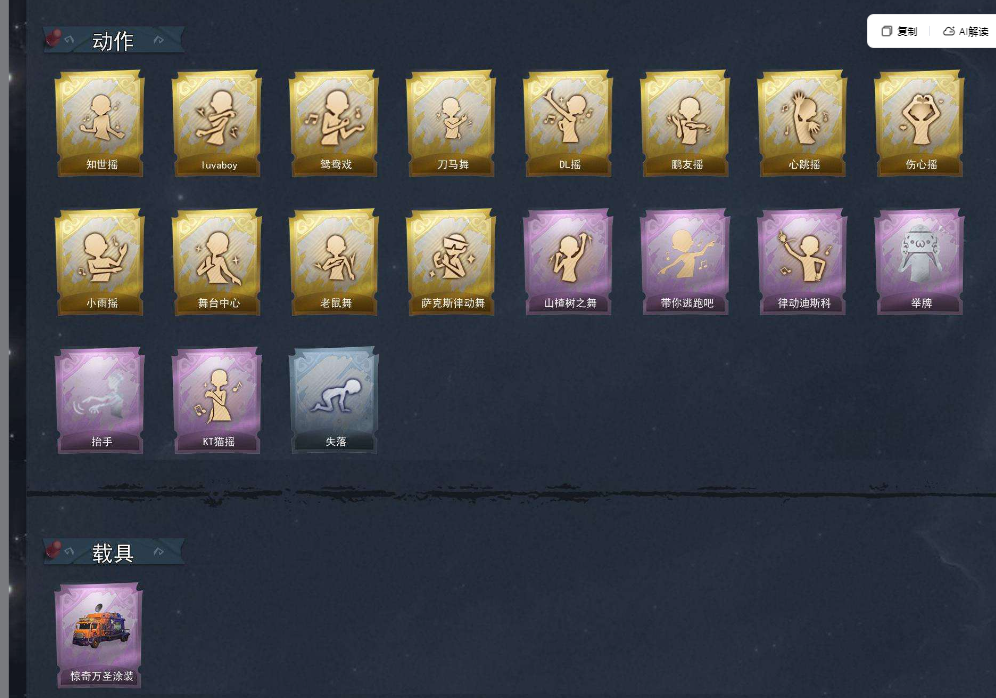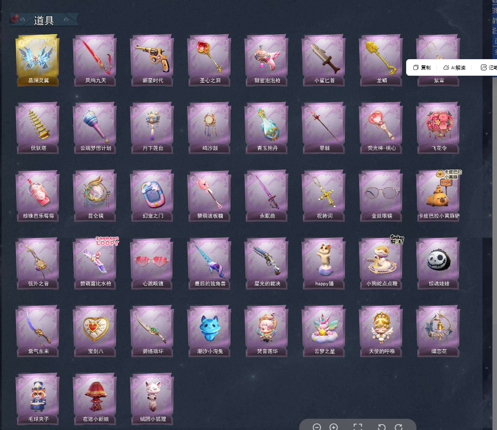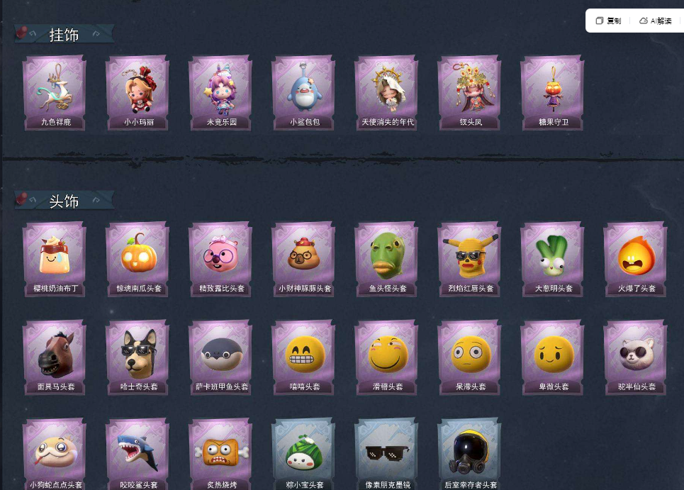 装备描述:【段位】专员【金色皮肤数量】4 【紫色皮肤数量】19 【道具皮肤数量】40 【累充】43560金砖 【赛季魔盒】稀世豪华魔盒 【员工】小黄、爱丽丝、零、阿念、逍遥、薇薇安、巫铃儿、莉莉、艾伦、爱德华 【金色皮肤】逍遥-莲华渡、薇薇安-圣光之谕、小黄-遗失的童话、巫铃儿-镜花辞 【紫色皮肤】零-搬开山、爱丽丝-甜梦派对、莉莉-莓果陷阱、小黄-异色序曲、阿念-迷途僵宝、莉莉-除妖小师妹、薇薇安-黑月挽歌、阿念-王子与骑士、莉莉-情公主、爱丽丝-冰公主、逍遥-泽引山海、阿念-灵昭鹿鸣、爱丽丝-瑞羽衔春、小黄-霓裳踏雪、零-青云逸歌、巫铃儿-素影瑶光、爱丽丝-丝缕哀歌、逍遥-绣春逍影、小黄-呱呱雨衣 【道具皮肤】喷气背包-晶澜灵翼、桃木剑-凤鸣九天、转轮手枪-新星时代、铲子-圣心之泪、电击枪-甜蜜泡泡枪、刺刀-小鲨匕首、铲子-龙鳞、摸金符-紫霄、葫芦-伏妖塔、专业手电-云端梦想计划、腰包-月下莲台、音响-鸣沙鼓、黄牛能量饮料-青玉抱丹、额外的背包-飞花令、黄牛能量饮料-珍珠芭乐莓莓、传送按钮-昆仑镜、传送按钮-幻宠之门、铲子-赞萌波板糖、桃木剑-永眠曲、摸金符-祝祷词、夜视仪-金丝眼镜、铲子-