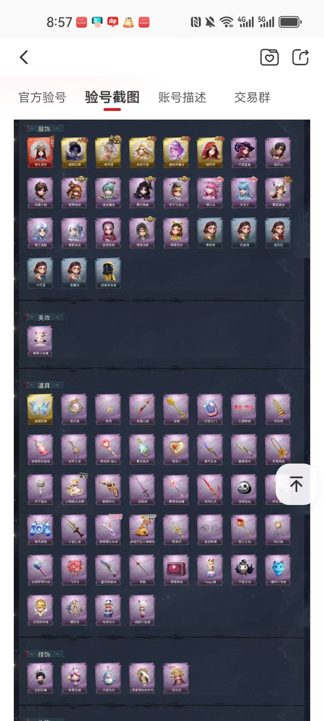 装备描述:【幻梦皮肤】巫铃儿-镜生遗梦 【金色皮肤】零-渡鸦公爵、逍遥-莲华渡、薇薇安-圣光之谕、小黄-遗失的童话、巫铃儿-镜花辞 【紫色皮肤】兰-千夜星谕、零-搬开山、薇薇安-仙锋小姐、莉莉-莓果陷阱、阿念-迷途僵宝、薇薇安-黑月挽歌、阿念-王子与骑士、莉莉-情公主、艾伦-水王子、小黄-霓裳踏雪、零-青云逸歌、巫铃儿-素影瑶光、爱丽丝-丝缕哀歌、逍遥-绣春逍影、小黄-呱呱雨衣 【道具皮肤】喷气背包-晶澜灵翼、传送按钮-昆仑镜、摸金符-紫霄、急救包-末章心跳、铲子-龙鳞、传送按钮-幻宠之门、夜视仪-心跳眼镜、葫芦-伏妖塔、黄牛能量饮料-珍珠芭乐莓莓、除颤仪-弦外之音、黄牛能量饮料-青玉抱丹、腰包-宝剑八、刺刀-紫气东来、刺刀-碧络琅环、摸金符-花落精绝、腰包-月下莲台、长鞭-小狗蛇点点鞭、转轮手枪-新星时代、桃木剑-永眠曲、铲子-赞萌波板糖、桃木剑-凤鸣九天、腰包-惊魂娃娃、桃木剑-绯色遗证、喷气背包-乘风溯雪、刺刀-小鲨匕首、短管猎枪-赞萌露比水枪、 【美妆】暗夜小恶魔