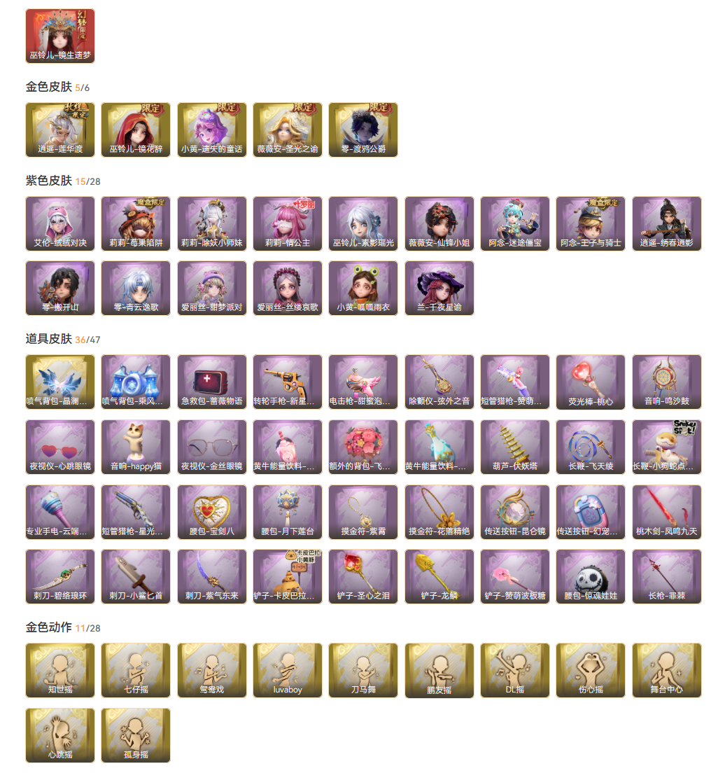 限制: 撤单率<20%才可租用此帐号装备描述:红皮1;金皮5;紫皮15;道具皮36;皮肤:巫铃儿-镜生遗梦,逍遥-莲华渡,零-渡鸦公爵,小黄-遗失的童话,巫铃儿-镜花辞,薇薇安-圣光之谕,莉莉-除妖小师妹,阿念-王子与骑士,薇薇安-仙锋小姐,零-搬开山,巫铃儿-素影瑶光,兰-千夜星谕,爱丽丝-甜梦派对,莉莉-情公主,逍遥-绣春逍影,莉莉-莓果陷阱,爱丽丝-丝缕哀歌,小黄-呱呱雨衣,零-青云逸歌,艾伦-绒绒对决,阿念-迷途僵宝;道具:喷气背包-晶澜灵翼,音响-鸣沙鼓,夜视仪-心跳眼镜,刺刀-紫气东来,荧光棒-桃心-荧光棒-桃心,夜视仪-金丝眼镜,传送按钮-昆仑镜,铲子-赞萌波板糖,腰包-宝剑八,桃木剑-凤鸣九天,短管猎枪-赞萌露比水枪,葫芦-伏妖塔,铲子-圣心之泪,传送按钮-幻宠之门,刺刀-碧络琅环,腰包-惊魂娃娃,长鞭-小狗蛇点点鞭,铲子-卡皮巴拉小黄豚铲,电击枪-甜蜜泡泡枪,刺刀-小鲨匕首,短管猎枪-星光的裁决,黄牛能量饮料-珍珠芭乐莓莓,转轮手枪-新星时代,摸金符-紫霄,额外的背包-飞花令,铲子-龙鳞,腰包-月下莲台,长鞭-飞天绫,长枪-罪棘,喷气背包-乘风溯雪,音响-happy猫,急救包-蔷薇物语,除颤仪-弦外之音,专业手电