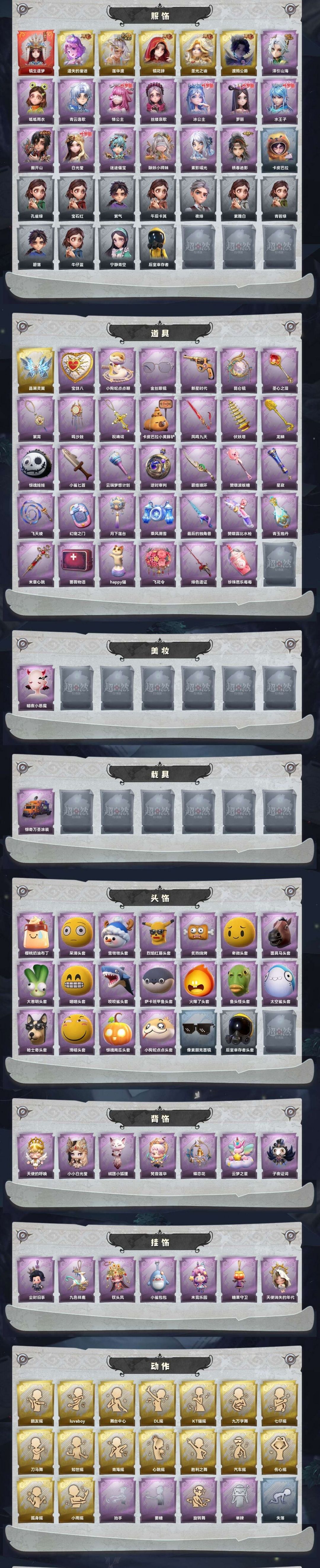 【1红6金19紫】全图鉴全车妆⭐晶澜灵翼⭐镜生遗梦莲华渡渡鸦公爵遗失的童话圣光之谕⭐露比小鲨狗蛇白泽