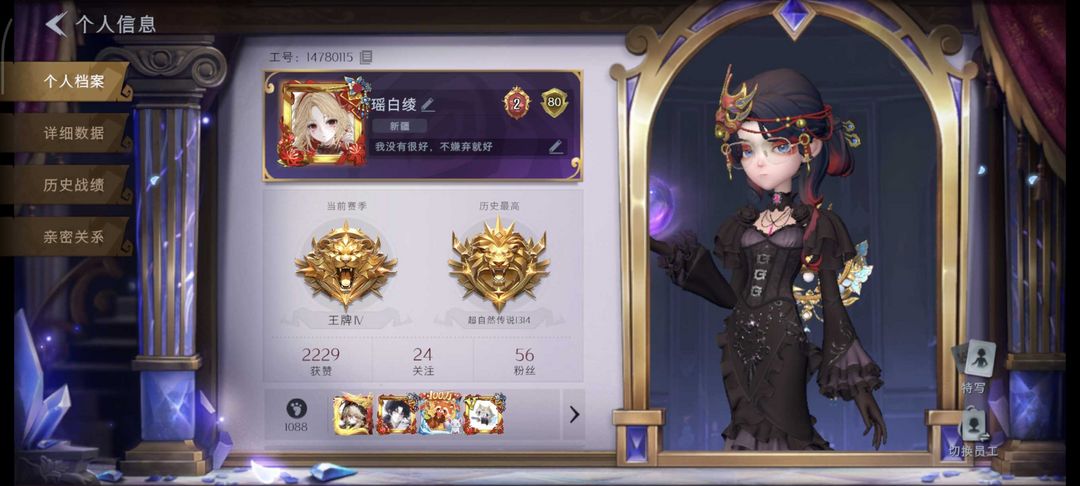 限制: 撤单率<35%才可租用此帐号装备描述:无币自行摸一把再游玩,恶意撤单永久拉黑 欢迎选择顶级号⛲双形态幻梦套装-镜生遗梦新皮已入⛲1红6金6赛季魔盒23紫皮⛲满图鉴46紫道具⛲满抽6金耀世⛲极品ID⛲满氪条号⛲巫灵儿红金全皮 ⛲ 毁号进小黑屋哦⛲ 镜花辞⛲血色中的玛丽⛲遗失的童话⛲圣光之谕⛲赤练将军⛲满武器⛲满梦居⛲ 顶级高端号⛲极品顶尖高配女号 可爱的宝子们喜欢收藏~ 本账号晚间时段更划算哦~喜欢熬夜的宝子收藏盯紧哦~ 喜欢本账号请点 ☆收藏☆ 方便下次租用,谢谢光临惠顾!喜欢本账号请点 ☆收藏☆ 方便下次租用,谢谢光临惠顾~