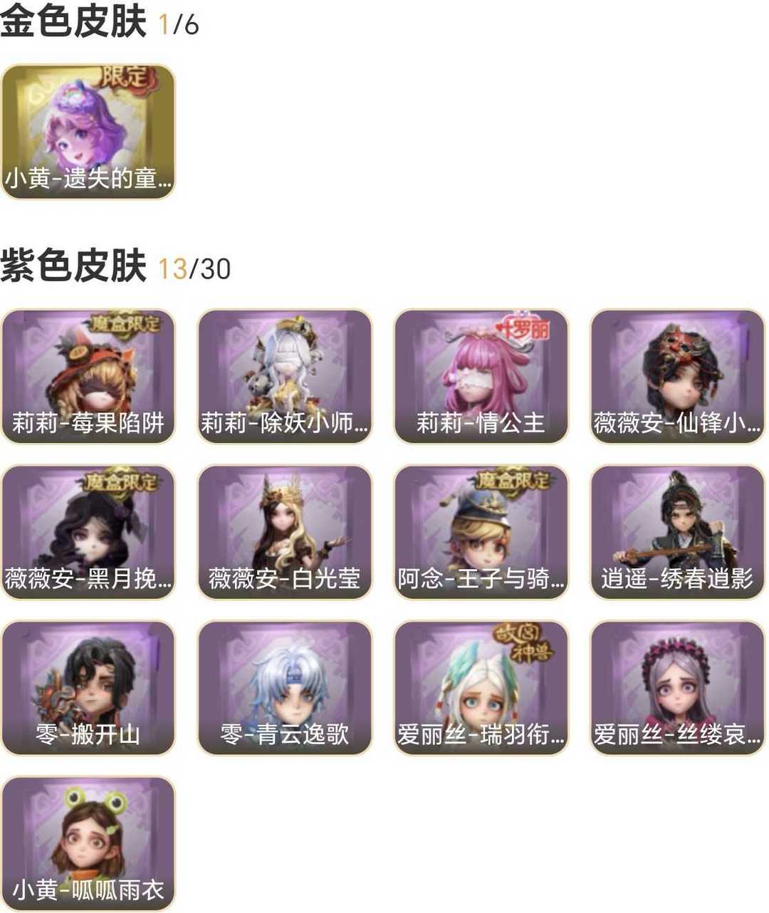 1金13紫⭐莉莉全皮小恶魔美妆黑月挽歌傩戏联动⭐遗失童话白光莹瑞羽衔春绣春逍影⭐月下莲台幻宠之门