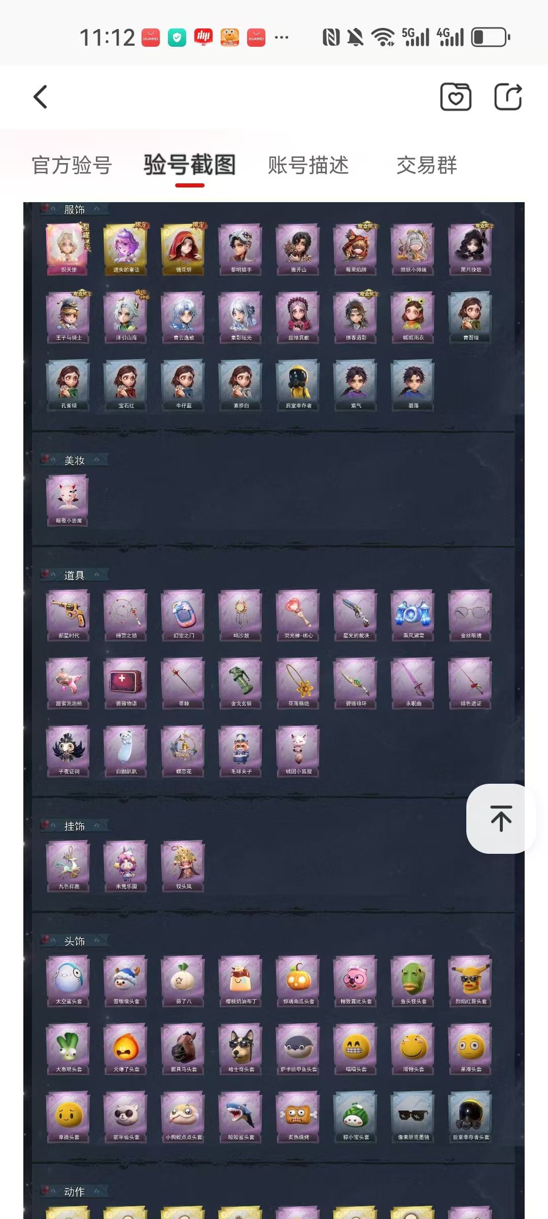 装备描述:【金色皮肤】小黄-炽天使、小黄-遗失的童话、巫铃儿-镜花辞 【紫色皮肤】艾伦-黎明猎手、零-搬开山、莉莉-莓果陷阱、莉莉-除妖小师妹、薇薇安-黑月挽歌、阿念-王子与骑士、逍遥-泽引山海、零-青云逸歌、巫铃儿-素影瑶光、爱丽丝-丝缕哀歌、逍遥-绣春逍影、小黄-呱呱雨衣 【道具皮肤】转轮手枪-新星时代、长鞭-缚誓之锁、传送按钮-幻宠之门、音响-鸣沙鼓、短管猎枪-星光的裁决、喷气背包-乘风溯雪、夜视仪-金丝眼镜、电击枪-甜蜜泡泡枪、急救包-蔷薇物语、闪光弹-金戈玄铜、摸金符-花落精绝、刺刀-碧络琅环、桃木剑-永眠曲、桃木剑-绯色遗证、背饰-子夜证词、背饰-白鼬趴趴、背饰-蝶恋花、背饰-毛球夹子 【美妆】暗夜小恶魔