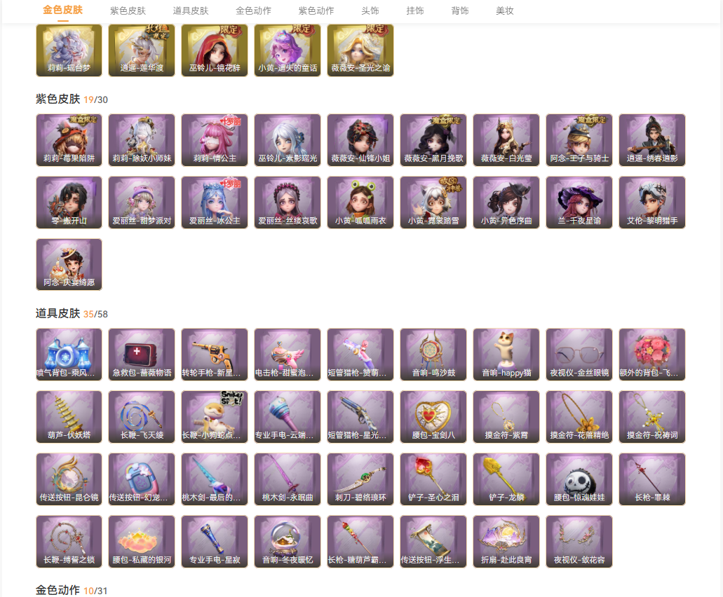 兔宝5金19紫35道具皮瑶台梦莲花渡镜花辞遗失的童话圣光之谕莓果陷阱情公主白光莹黑月挽歌搬开口霓裳踏