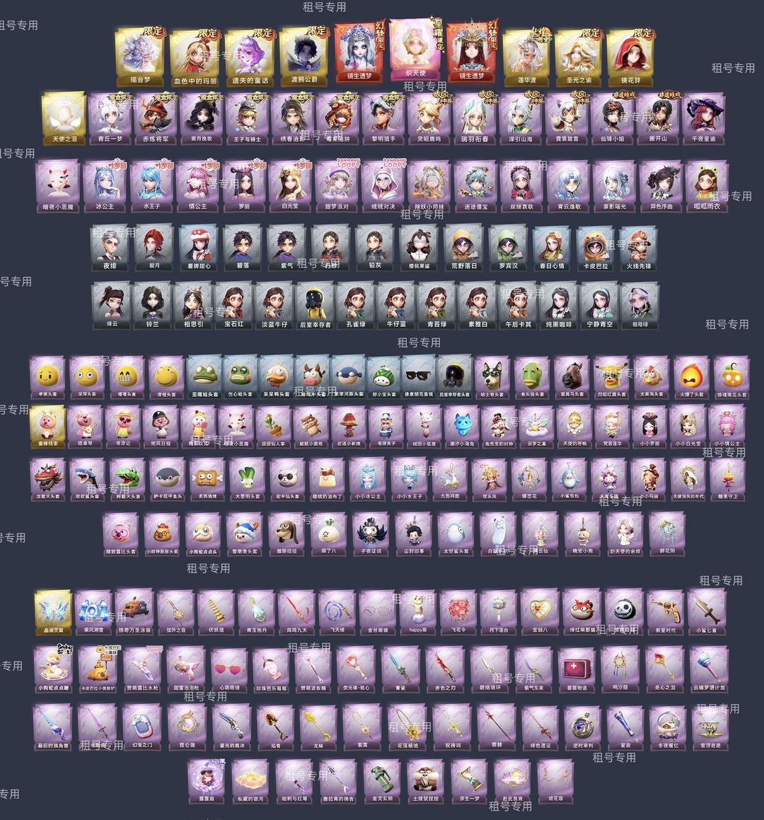 限制: 撤单率<30%才可租用此帐号装备描述:只瑕商城常驻舞蹈 其他都有 ✅全图鉴无瑕 有内测全套的全图鉴(出新皮当天会补) ✅所有红、金、紫、蓝、白皮、头套、道具皮肤都有,有建议可以评论(我只能看回复不了) ✅无押默认开二级密码 ❌铲币恶意消耗会拉黑 我会自动补铲铲 ❌恶意撤单全平台拉黑