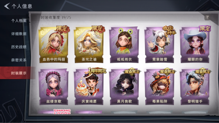 装备描述:金皮2;紫皮10;道具皮27;皮肤:薇薇安-圣光之谕,爱丽丝-血色中的玛丽,薇薇安-黑月挽歌,爱丽丝-耀眼的你,莉莉-莓果陷阱,爱丽丝-丝缕哀歌,艾伦-黎明猎手,小黄-呱呱雨衣,小黄-霓裳踏雪,艾伦-绒绒对决,阿念-庆宴绮愿,兰-千夜星谕;道具:闪光弹-金戈玄铜,长鞭-缚誓之锁,长枪-糖葫芦霸王枪,铲子-赞萌波板糖,桃木剑-最后的独角兽,腰包-惊魂娃娃,急救包-蔷薇物语,转轮手枪-新星时代,长枪-罪棘,摸金符-花落精绝,专业手电-云端梦想计划,夜视仪-心跳眼镜,长枪-波塞冬,桃木剑-永眠曲,摸金符-祝祷词,喷气背包-乘风溯雪,传送按钮-幻宠之门,刺刀-小鲨匕首,桃木剑-凤鸣九天,黄牛能量饮料-珍珠芭乐莓莓,短管猎枪-赞萌露比水枪,铲子-龙鳞,摸金符-海洋之心,铲子-圣心之泪,音响-鸣沙鼓,腰包-红运福虎,腰包-宝剑八;美妆:美妆-暗夜小恶魔;饰品:头饰-呆滞头套,头饰-鳄霸天头套,头饰-太空鲨头套,头饰-滑稽头套,头饰-哈士奇头套,头饰-烈焰红唇头套,头饰-驼半仙头套,头饰-火爆了头套,头饰-惊魂南瓜头套,头饰-鱼头怪头套,头饰-咬咬鲨头套,头饰-大葱明头套,头饰-芝麻糊汤圆,头饰-卑