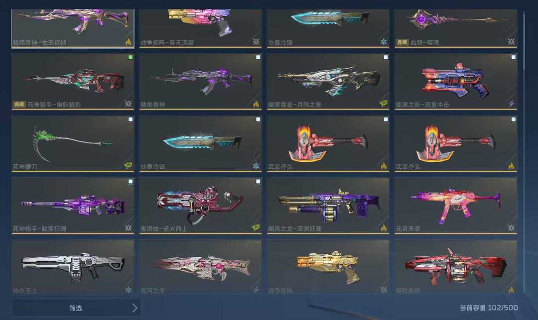 角色-女王,精绝兽神-女王权柄、死神猎手-幽航猎影等皮肤