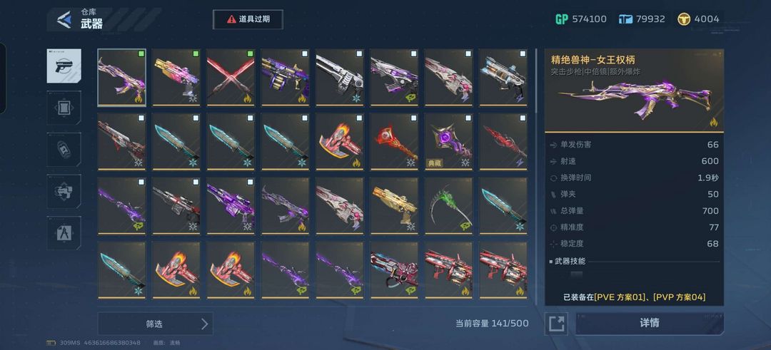 装备描述:角色:精绝女皇,张杰,胡八一,茉莉,贝拉,黑寡妇 武器:飓风之龙,幽冥毒皇,死神猎手×2,钢铁轰鸣×3,纯白至上,能源之影,死亡之拥,冰点双锋,死神镰刀,沙漠冷锋×5,女皇权柄,精绝兽神,冥河之矛×2,战争矩阵×2,鬼铜蚀,春雷振,蛇神之剑×3冥河之矛,血怨噬魂,血怨。 挂饰装饰:赛季挂饰全齐,狼头,独角兽,面面俱豚,惊讶头套,逆起发财。