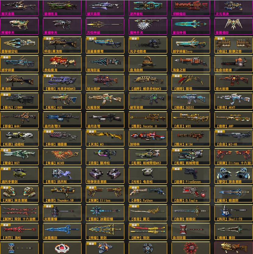 龙腾颜●双黯四件套三特典狙加特林黯火黯影●金兔龙神威次元天使雷●重铸套怀旧套光束闪电维京天巡暗影暗火