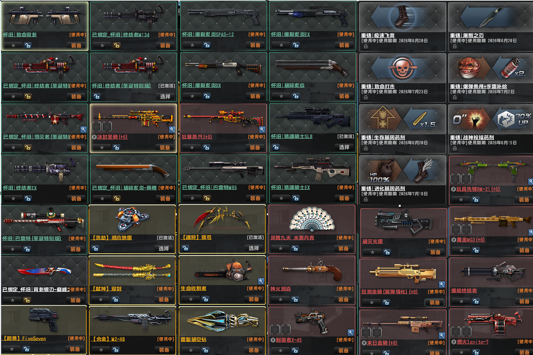 限制: 撤单率<70%才可租用此帐号装备描述:下载上号器,输入卡密,点击立即登录,自己打开游戏 按一下F9键→双手离开鼠标键盘!输入完毕后!→拉动滑块→手动选择大区!→点击启动即可! 已经去黑雾!! 重铸邪皇,圣帝,重铸怒海狂鲨,星陨巨锤,盘龙血煞,加特林,海皇之怒,生命收割者,怀旧黑龙炮,赤色彗星,疾风之翼 荒漠金鹰,金红双蝎,旋风斧头,锯刃,死亡骑士,圣诞毁灭者,殒裂,卡利柯,致命双刺,圣诞终结者,终结者ex,爆裂炙炎DX,猎魂骑士ex,风魔啸天破吹风机,破碎炙焱,圣水手雷, 曙光之星-毁灭者,超兽,猎魂金骑,黄金MG3,狂怒金骑,冰封圣骑+6,合金,,末日金骑,浩劫,狂暴蒸汽+9,爆炎蒸汽+6,尤利乌斯+6,原石套,沙尘, 生化模式,怀旧模式,重铸模式 致命打击,极速飞奔,进化基因,屠戮之刃,战神祝福,生存基因,手雷补给