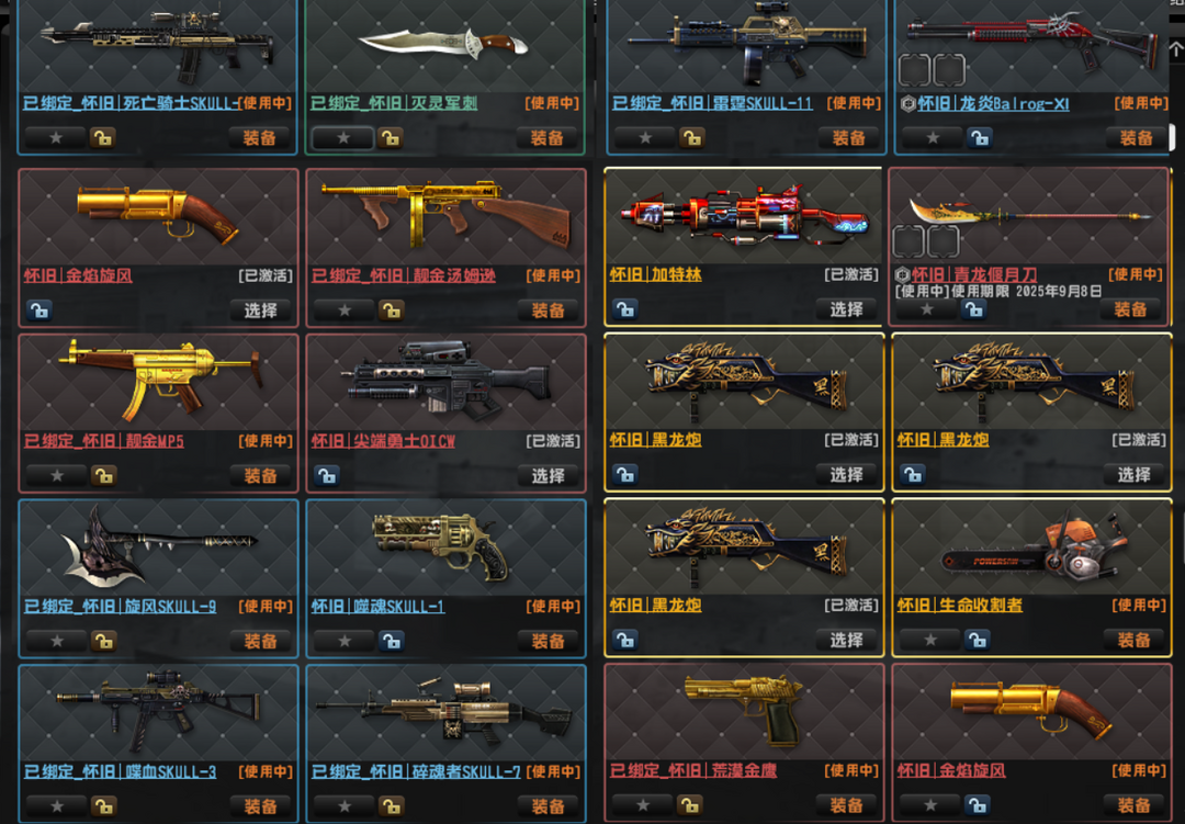 重铸电锯、黑龙炮、金红、斧头、已经去黑雾,怀旧邪皇圣帝,电锯,盘龙血煞。海皇之怒。黑龙炮、旋风、金红