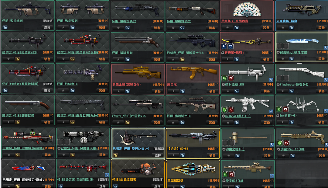 怀旧邪皇圣帝、567都有。电锯,黑龙炮、锯刃、旋风、金红,礼花,赤色彗星,海皇之怒,盘龙血煞