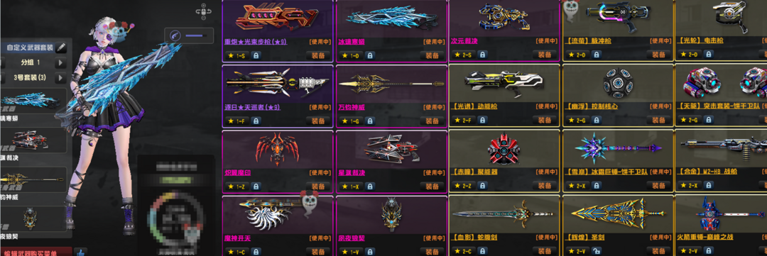 蛇舞表●准紫钻●蛇神冰璃寒蟒新四件套双次元万钧神威夙夜狼雷恶魔神●九星光束套9星天巡套●闪电套重铸套