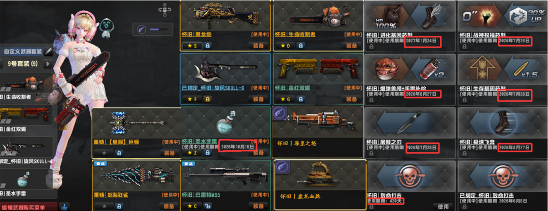 龙腾发●特典狙暗影黯影狙●重铸星陨巨锤怒海狂鲨●怀旧套盘龙炮电锯金红斧头●三闪电光束维京套去雾
