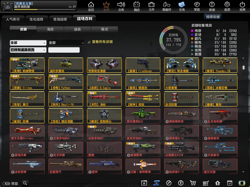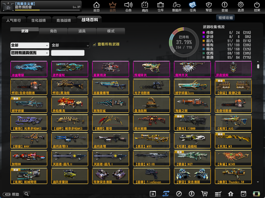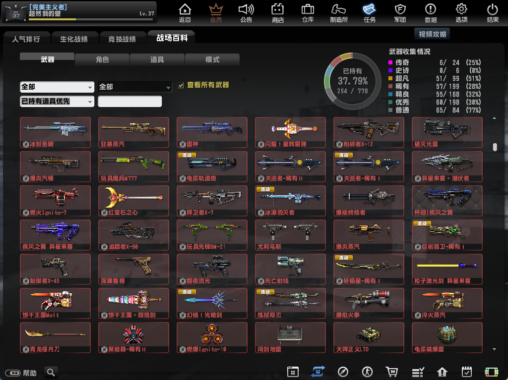 装备描述:蛇神,星渊裁决,白洞,狼雷,魔神开天,光束MK123,天巡稀有12,超凡12,光谱动能枪,擎空,雪崩,幽浮核心