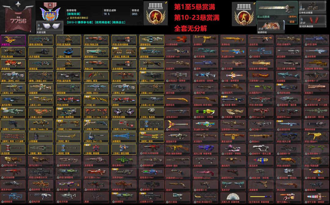 绿称号】7千级】全套怀旧重铸感染号加特林龙炮】弧光神鬼】巨人切割立体装置电音三太子猛虎】全赛季满级】