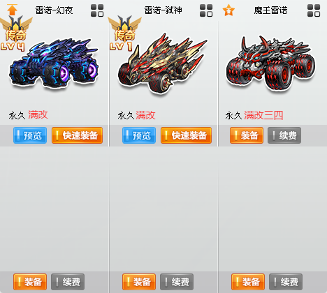 满改双四爆天甲曜影10阶〓满改地狱火〓满改雷诺幻夜4阶〓满改三四魔王雷诺〓艾丽莎10