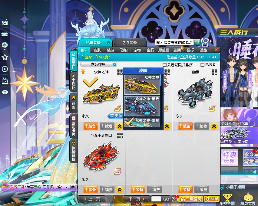 3S车=全29双四众神之神幽兰星云➕男衣柜150页/女衣柜100页➕竞速宠10