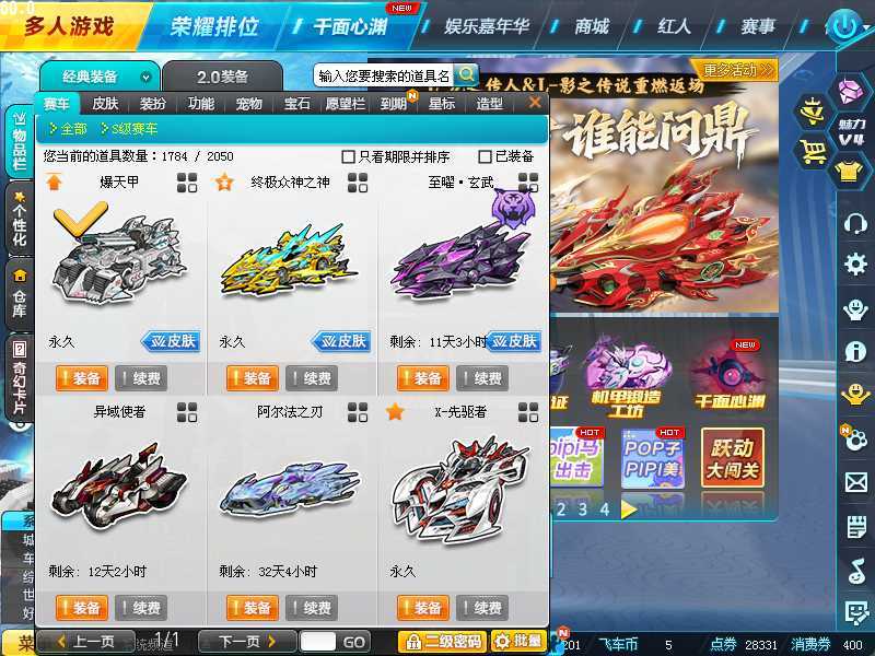 双S车手感超好的终极众神/倚天皮肤全29双4+爆天甲全29双4+雷诺幻夜+飞碟+哪吒三太子+紫钻5级