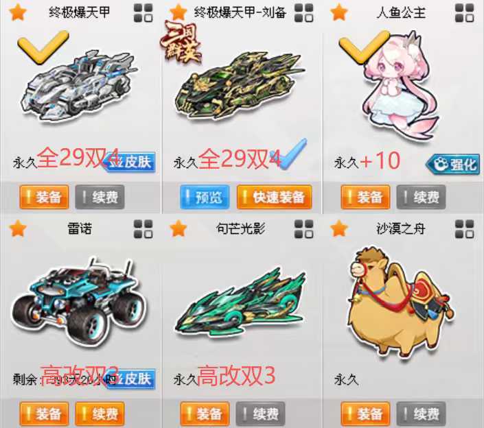 终极爆天甲刘备全29双4,雷诺高改双3,句芒光影高改双3,人鱼公主+10