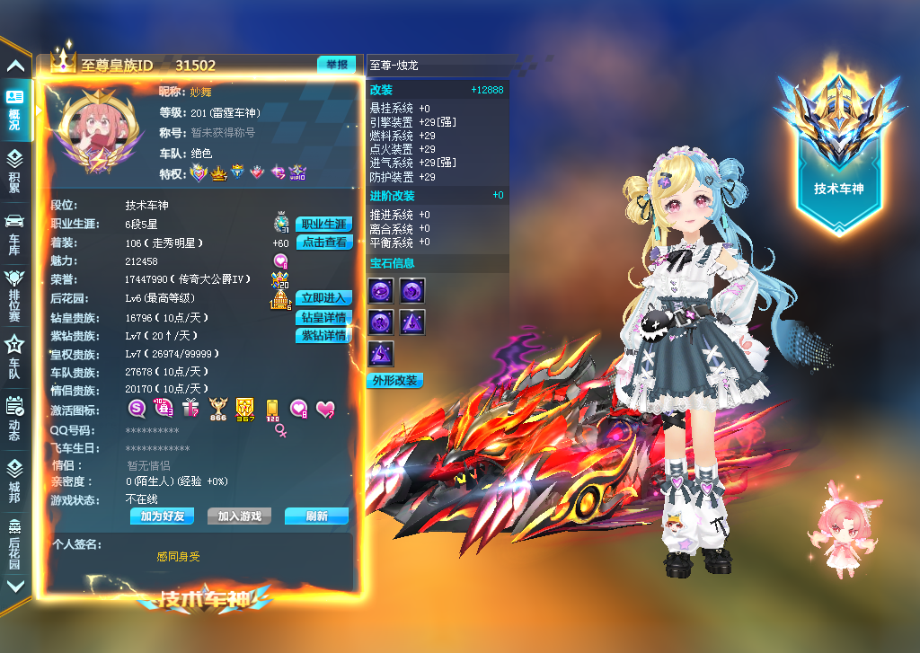 装备描述:女衣柜号衣服多多 有独龙青龙耀虎 在房间就是大佬