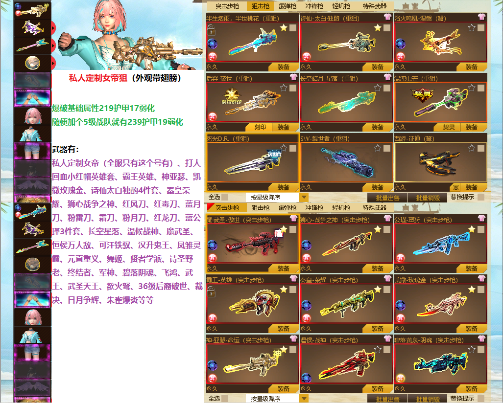 带翅膀的私人定制女帝你见过吗+毒刀月刀风刀龙刀霜刀雷刀等具体看图