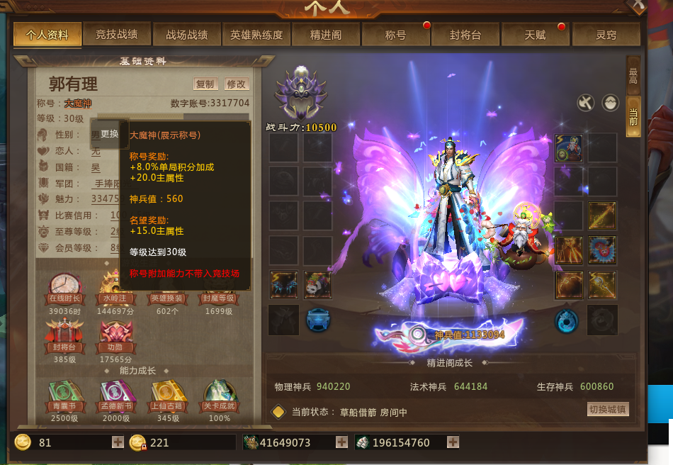 幻神30W魅力魅力双持大圣翅膀火马神鬼帝602皮肤