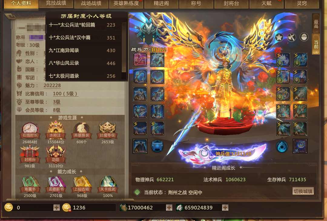 136W神兵606皮肤 3令尊2神话 站街917爆伤 宠物龙子 狐狸 鬼帅 龙人 月仙 副本出征玩具