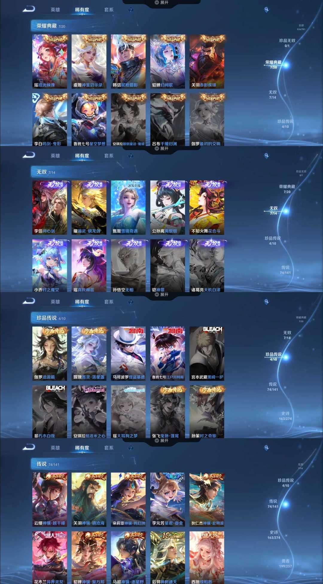 七典藏7无双4珍品74传说瑶典藏♥问心剑♥沧流箭♥六马年限定♥异界灵契♥星君娄金♥柯南基德♥最新皮♥