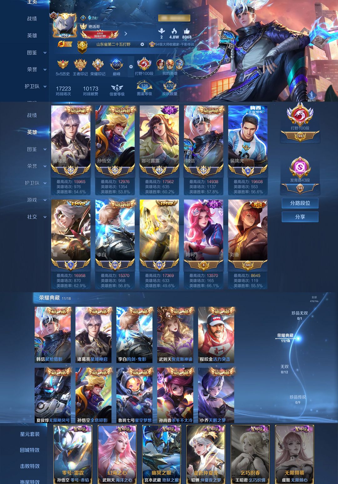 在榜省级百段打野❤4大历史国服猴子国服韩信国服诸葛亮❤10典藏韩信省级打野100段