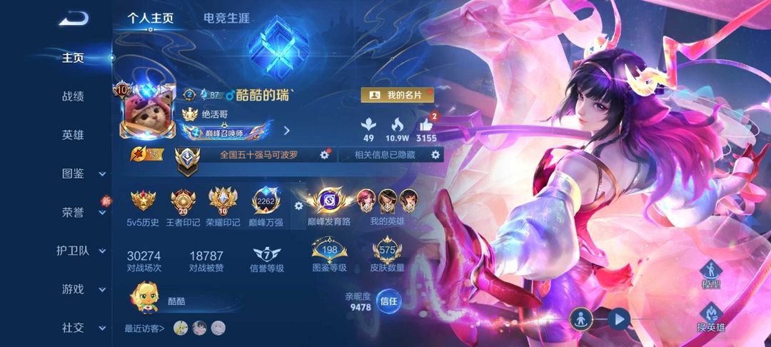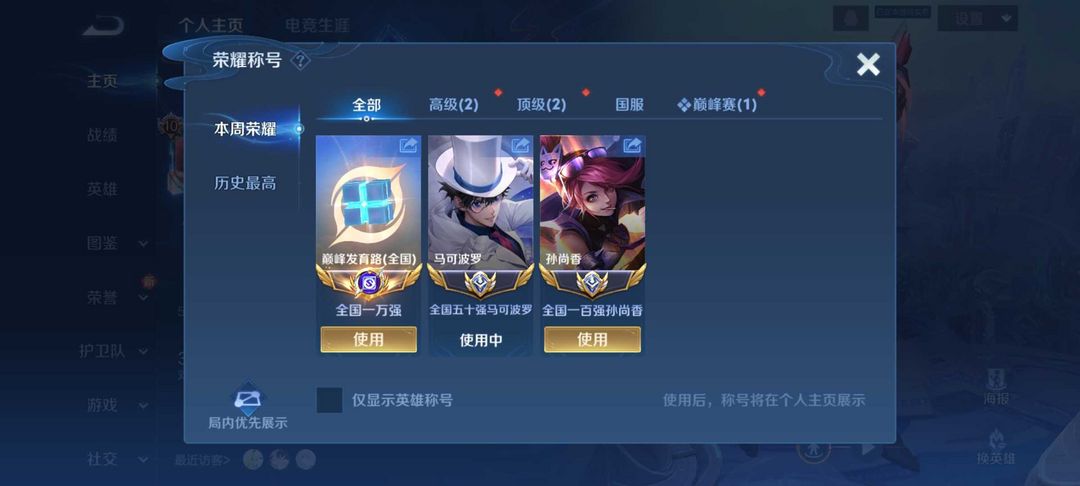 没禁言⭐️本周在榜双小国标50强马克波罗孙尚香⚡️现巅峰万强1000名闪电框❤️禁巅峰⭐️满皮国服
