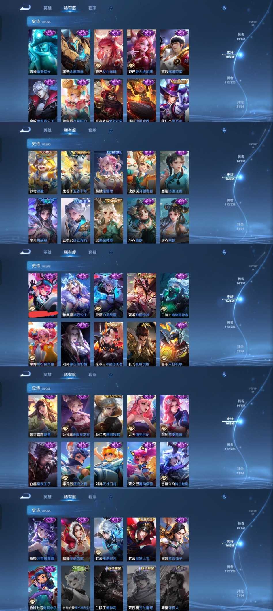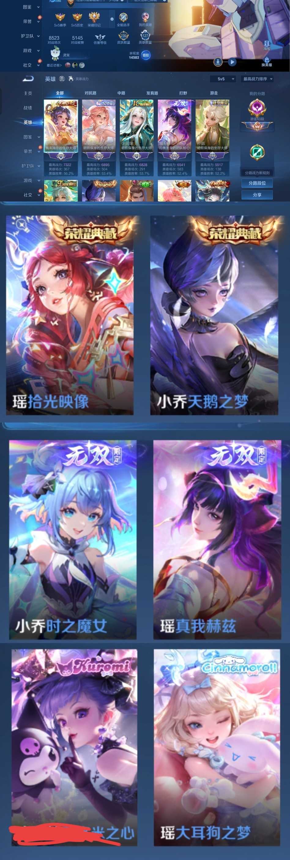 限制: 撤单率<49%才可租用此帐号装备描述:时间到了还登录白玩或者顶号全部改密拉黑处理永不解除,顶号机器会秒禁玩改密,顶号不仅拉黑还没得玩,赚三两块不容易,请理解谢谢。 ❤❤❤❤❤❤❤❤❤❤❤❤ 请勿开挂,挂机,送头,骂人,撤单后游戏等如有违规永久拉黑永不解除。 重置二级密码不要费劲了,号主每天都会上号查看,多行不义必自毙,人在做天在看,多做好事多自律,少做缺德事 该号英雄127个皮肤239个,典藏2个,无双2个,珍品传说2个,传说14个,史诗76个,祝你游戏愉快~