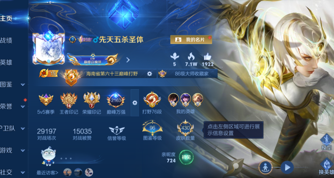 禁巅峰.在榜巅峰万强2163分闪电框☀在榜5省:露娜澜玄策老虎马超☀星域神启☀打野71段