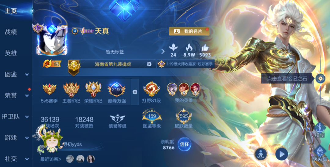 禁巅峰.巅峰万强2190分闪电框♉7省标铠玄策老虎李白韩信诸葛马超♉打野81段♉满打野无双新皮