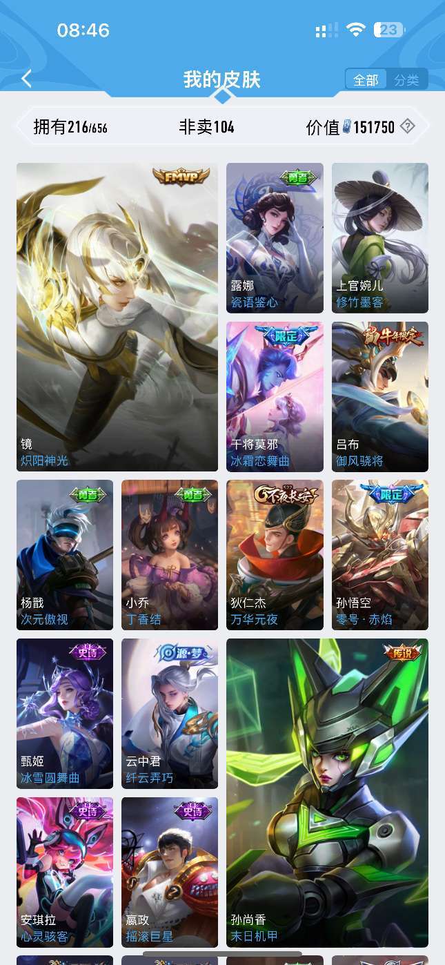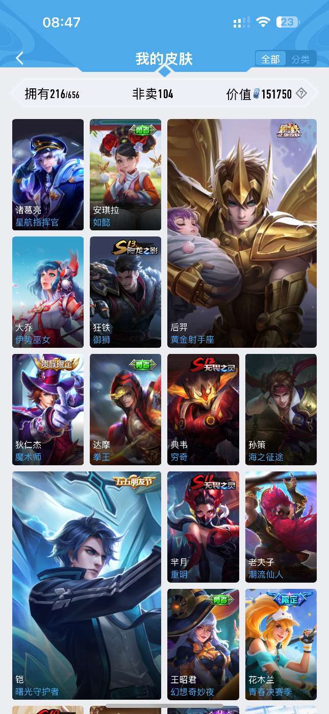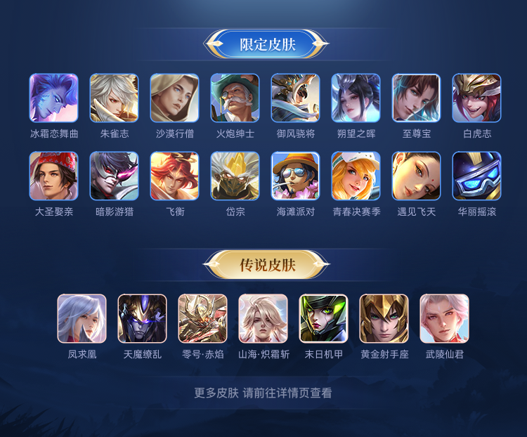 李白凤求凰 诸葛亮武陵仙君 孙尚香末日机甲 干将莫邪久胜战神 貂蝉猫影幻舞 后羿黄金射手座