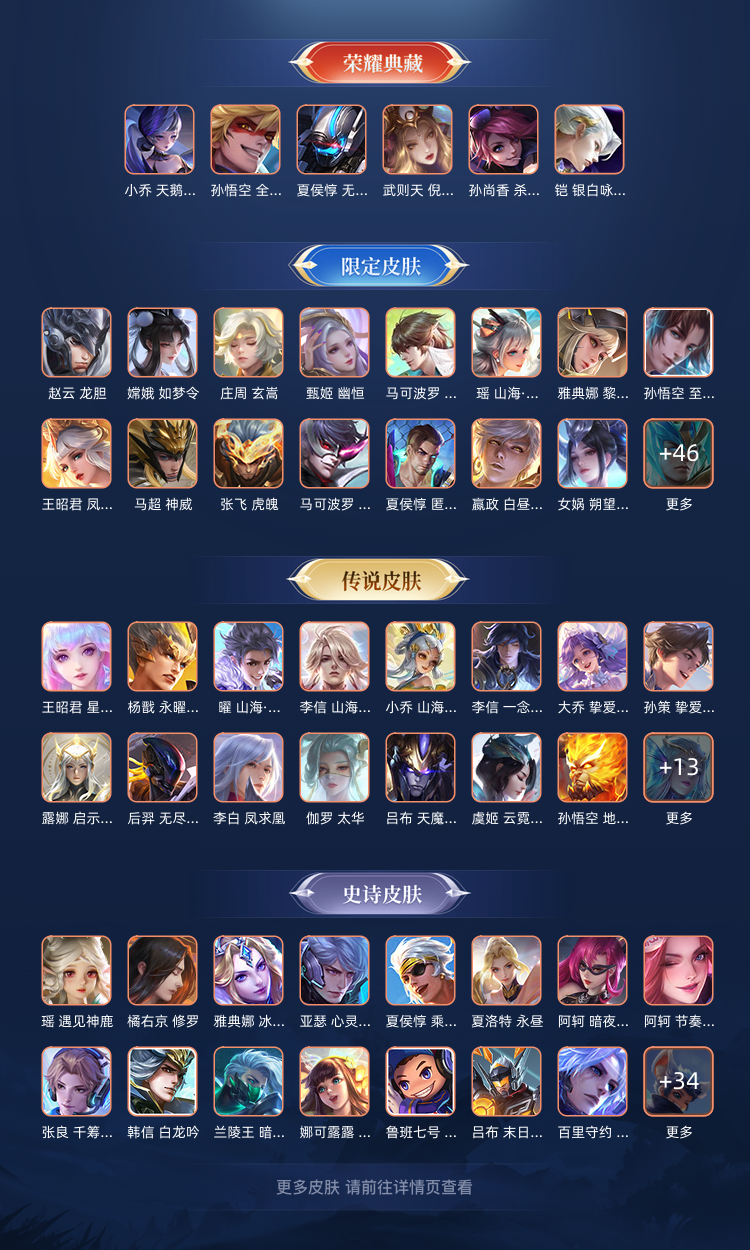 贵族V10丨364皮肤丨至尊宝丨青丘九尾丨银白咏叹调丨无限飓风号丨倪克斯神谕丨天鹅之梦丨山海炽霜斩丨
